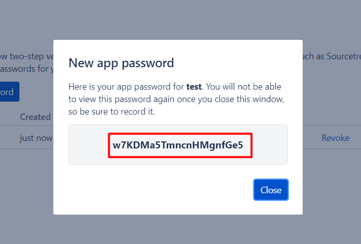 Copy your app password and paste on the settings page in Gitoqlok: